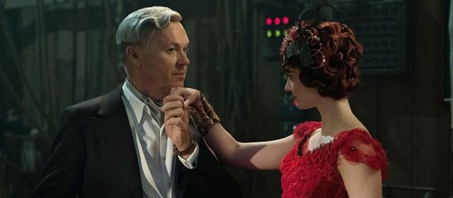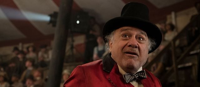 Tal postura fica escancarada já na sequência de abertura, uma lúdica (e desnecessária) viagem de trem entre cidades onde até mesmo a locomotiva simula um sorriso. A partir de então, o diretor apresenta a fauna circense tendo por base naquela que é a grande mudança deste filme em relação à animação clássica: a história, desta vez, é contada apenas pelos humanos. Com isso, cabe ao dono do circo apresentar a paixão pela lona mesclada aos trambiques necessários para pagar as contas e seguir em frente, em um misto de picareta adorável tão bem personificado por Danny DeVito - é ele, de longe, o melhor do elenco! Soma-se a isso um Colin Farrell que soa como a personificação humana de Dumbo: sem um braço devido à atuação na Primeira Guerra Mundial, ele retorna para casa sem esposa, sem a fama de outrora e precisando criar duas crianças, ao mesmo tempo em que precisa se realocar (e se aceitar) na nova situação. Não por acaso, Farrell empresta ao personagem sua conhecida faceta tristonha, tão usada em suas atuações mais preguiçosas.
