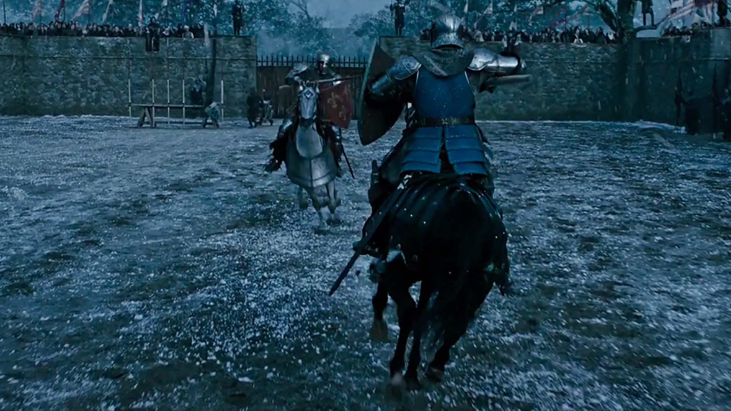 Um dos elementos que ajudam a compor o retrato visceral do século XIV de O Último Duelo são as grandes batalhas que ocorrem durante o longa. E assim como em Gladiador, Ridley Scott não poupa esforços para chocar o público com cenas extremamente sanguinárias e gráficas. Mas claro, o artifício não soa apelativo. Ao contrário, ele ajuda a intensificar a atmosfera repulsiva de tempos antiquados.
