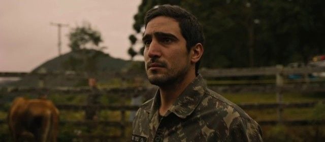 Uma vez que aqueles crimes bárbaros nunca foram completamente resolvidos (Ibraim foi morto a tiros na floresta local e Henrique está preso, mas nega autoria dos crimes), Macabro não se propõe a estudar os casos ou seus autores, mas seguir uma narrativa com viés reflexivo com base no olhar de um protagonista que não é, nem de longe, um herói. Sargento do BOPE, Teo (Renato Góes) abre o filme executando um morador de comunidade por engano, em mais uma missão falha da polícia do Rio de Janeiro. Mas, se de início a prioridade deste olhar supostamente serve para denunciar atos imorais, logo a obra vai dando espaço para defendê-lo.