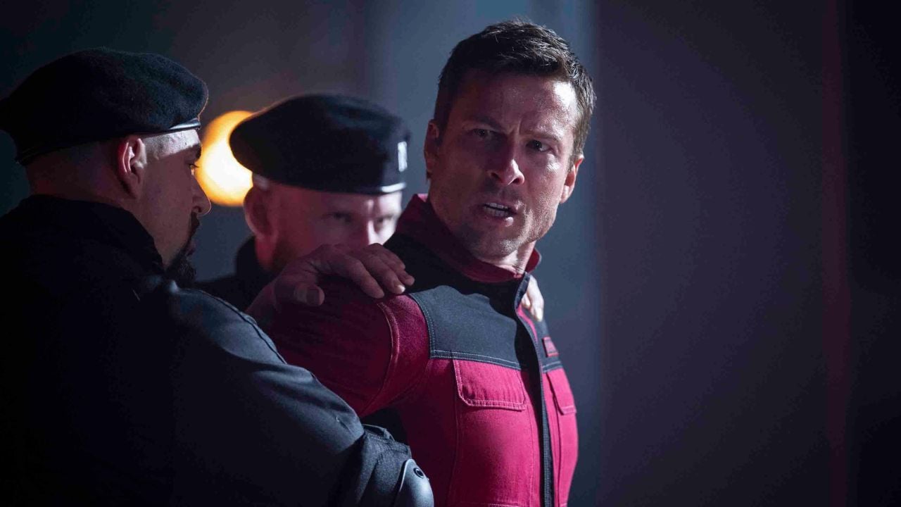 Assumindo o papel que já foi de Arnold Schwarzenegger – que deu sua bênção para a nova adaptação – Glen Powell tem a fisicalidade para encarar as cenas de ação frenéticas e perseguições violentas, ao mesmo tempo que seu carisma nos faz torcer pelo personagem durante toda a produção. O ator também convence na carga dramática nas motivações de Ben Richards, arriscando sua vida no reality show para salvar sua filha e esposa, sendo aquele um herói clássico na luta contra tudo.
