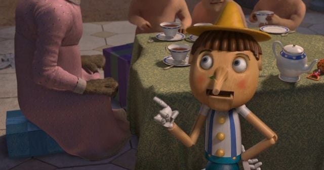 Durante a apresentação de Jack Horner, o principal vilão da história, Pinóquio dá as caras na tela. A sequência faz parte de uma inusitada esquete, em que o personagem ofusca uma versão jovem do antagonista e ganha destaque num espetáculo itinerante.