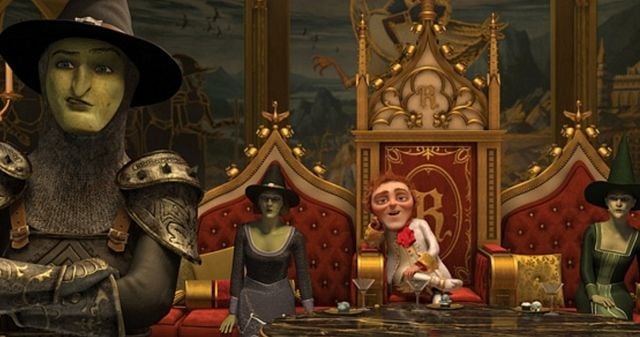 Depois de ser liberado pelo médico, Gato de Botas sai do consultório onde encontra diversas pessoas na sala de espera. Uma delas pertence ao trio de Bruxas Malvadas, que já apareceu em diversos capítulos da franquia. É uma participação bem rápida, mas firma ainda mais a conexão entre Shrek e o spin-off.