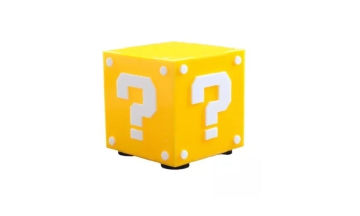 Já pensou em ter uma das caixas misteriosas clássicas do Super Mario na sua casa? Esta luminária realiza esse sonho para você. Fazendo referência a um dos elementos mais tradicionais do game, o objeto vai ficar perfeito no seu quarto, sala ou no ambiente que você quiser decorar. Encontre na Amazon por R$ 69,00.