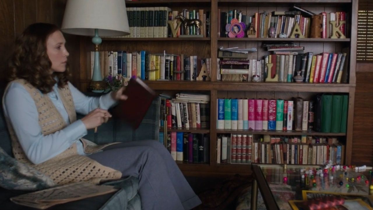 Invocação do Mal vai chegar à TV: Série nova está sendo produzida, mas com reviravoltaAinda, se pausarmos aos 42 minutos e 20 segundos, vemos mais um easter-egg. Desta vez, as letras estão na estante de livros atrás de Lorraine e sua filha, Judy (Sterling Jerins).