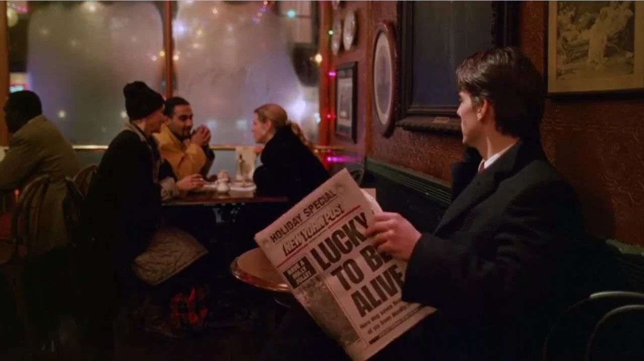 Na imagem acima, próximo ao fim do filme, presenciamos o personagem de Cruise sentado em um café e lendo um jornal que diz “Sorte de estar vivo”. Muitos argumentam que a manchete seria um recado propositalmente deixado por Kubrick, contente ao ter escapado de um dos últimos atentados contra sua vida. Como dito anteriormente, o diretor não sobreviveu para ver a produção chegar aos cinemas, mas a mensagem continuou reverberando através dos anos até chegar a você, caro leitor do AdoroCinema.