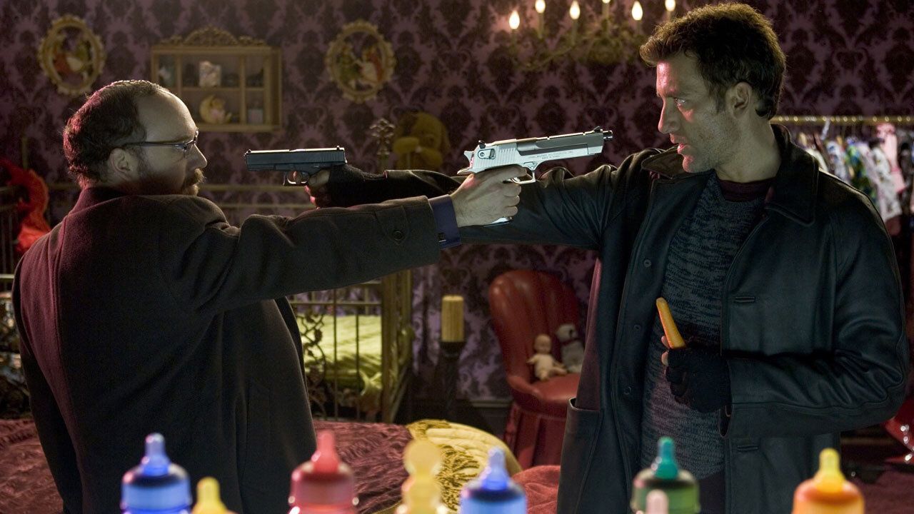 Praticamente desde o primeiro minuto, Shoot 'Em Up, no original, é uma agitação de tiros ininterrupta, que reflete sobre seus pontos fortes e simplesmente oferece o melhor entretenimento na forma de cenas de ação malucas. No estilo John Wick, o Sr. Smith enfrenta uma força superior de inimigos, apenas de uma maneira muito mais insana em comparação com o personagem de Keanu Reeves.