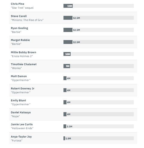 Se o valor parece alto, vale ressaltar que ele ainda é oito vezes menor do que os US$100 milhões conquistados por Tom Cruise em Top Gun: Maverick. No ranking geral, que une atores e atrizes, Margot ocupa apenas a décima oitava posição, ficando atrás de nomes como Will Smith, The Rock, Brad Pitt, Chris Pine, Tom Hardy e mais.