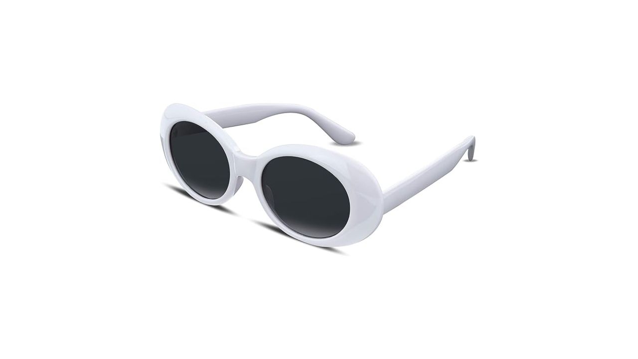 O óculos branco arredondado e retrô compôs um dos looks mais icônicos da turnê. Encontre na Amazon por R$ 217,35.
