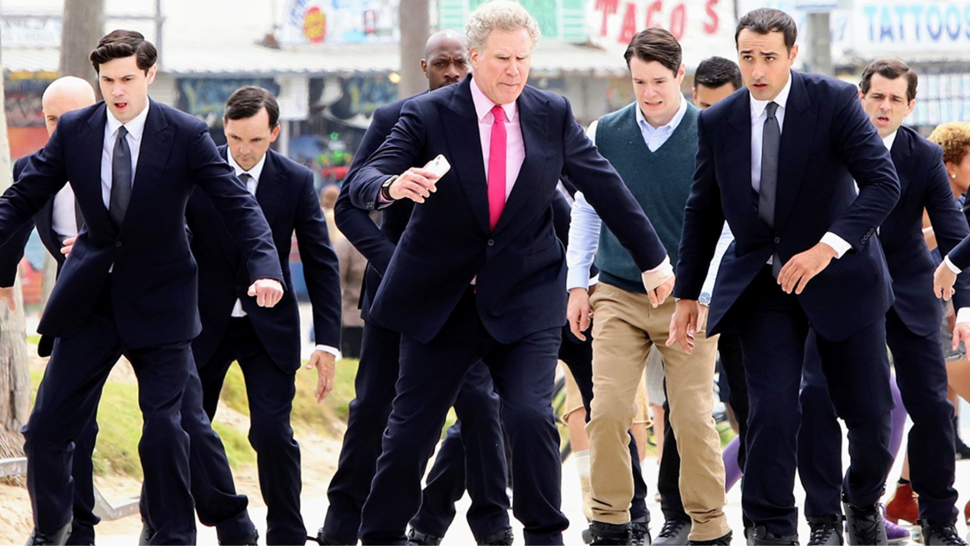 O CEO da Mattel realiza essa ação ao tentar capturar a Barbie de Margot Robbie no prédio principal da diretoria da Mattel, gritando a frase para orientar os outros executivos. Por outros lado, Allan diz isso ao pular uma cerca na missão de reverter a lavagem cerebral criada pelos Kens, ao invés de simplesmente sair andando normalmente.