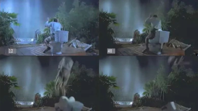 Para a cena da morte vergonhosa de Donald Gennaro (Martin Ferrero), o Rex é uma criação totalmente em CGI. Para evitar cortes visíveis devido ao vento e à chuva, foi decidido usar um fio para puxar um dublê do vaso sanitário enquanto o Rex o retirava do lugar. A cabeça do Rex, com um dublê em CGI representando Gennaro em sua boca, obscureceu em grande parte a saída do dublê.