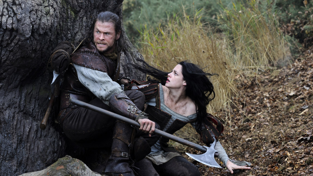 Nessa reinterpretação do conto de fadas, a rainha má (Charlize Theron) também quer que sua enteada titular (Stewart) seja assassinada. No entanto, o caçador (Hemsworth) não tem intenção de ferir Branca de Neve e prefere trabalhar com ela para acabar com o reinado de terror da rainha.