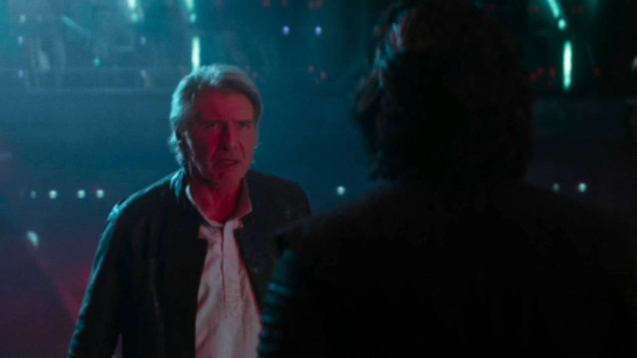 No início do filme, ficamos sabendo que Kylo Ren (nome verdadeiro Ben Solo) era, na verdade, filho de Han Solo e Leia, e o jovem matou seu pai com um sabre de luz dentro da base Starkiller.