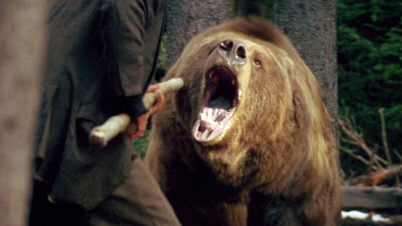 O referido gigante peludo é interpretado por uma das estrelas animais da década de 1990. Bart the Bear nasceu em 1977 e estrelou O Urso, de Jean-Jacques Annaud. Ele também fez parte do elenco de Lendas da Paixão ao lado de Hopkins e Brad Pitt e tinha cerca de 2,90 metros de altura. Com 680 quilos, Bart poderia ter causado uma grande confusão no set, mas foi um colega de trabalho bastante agradável - como pode ser lido no obituário de Bart, que morreu em 2000.