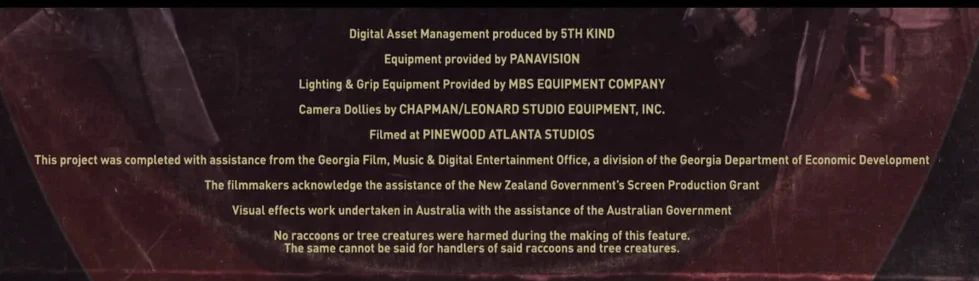 A propósito, se você ficar até o final da primeira sequência, há uma leve brincadeira que vai além das habituais cenas pós-créditos. Nos créditos, perto do final, podemos ver uma placa dizendo: "Nenhum guaxinim ou árvore foi prejudicado na produção deste filme. O mesmo não se pode dizer dos responsáveis por esses guaxinins ou árvores". Sabendo que poucos ficariam para ler esses avisos finais, Gunn decidiu fazer uma cesta de três pontos. E ele fez uma cesta, como sempre.