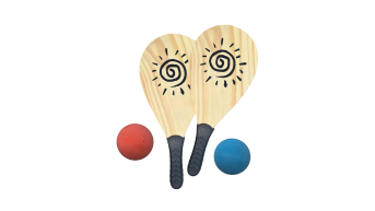 Este conjunto conta com duas raquetes de pinus e um par de bolas de frescobol de borracha, sendo perfeito para você começar a praticar na praia esse esporte tão difícil. Ele é bem prático de se carregar e vai te auxiliar a se preparar para o mundo do tênis profissional.
