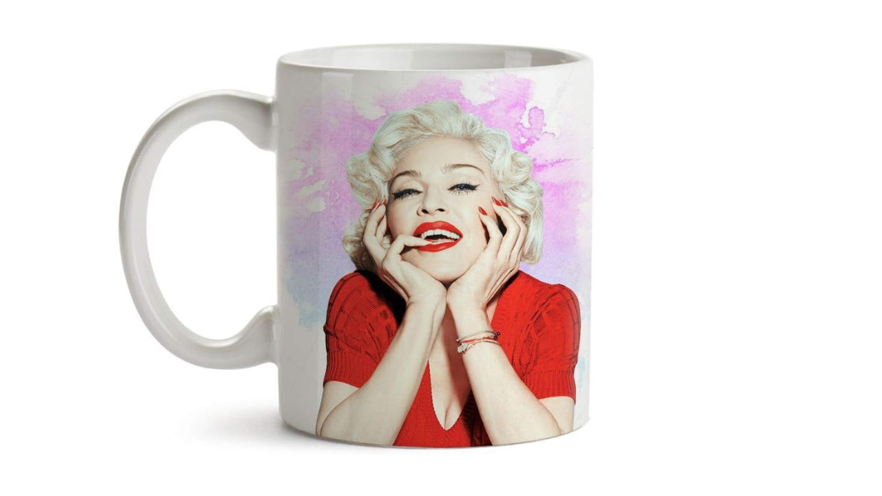 E, se você é realmente um grande admirador dela, vai amar ter essa caneca com uma estampa de uma foto em que Madonna aparece radiante. O modelo é bastante alegre e cheio de cores, perfeito para te ajudar a entrar no clima do show dela em Copacabana.