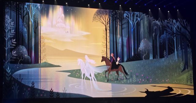 A arte conceitual divulgada na D23 apresenta as irmãs andando de cavalo em uma floresta com Olaf. Ela está sobre uma versão mágica do animal em cima de um lago no qual se reflete uma figura que parece ter chifres e uma lança ou cajado. Apenas o boneco de neve parece vê-lo. Enquanto isso, as duas olham para o horizonte onde há um reino brilhante no céu.