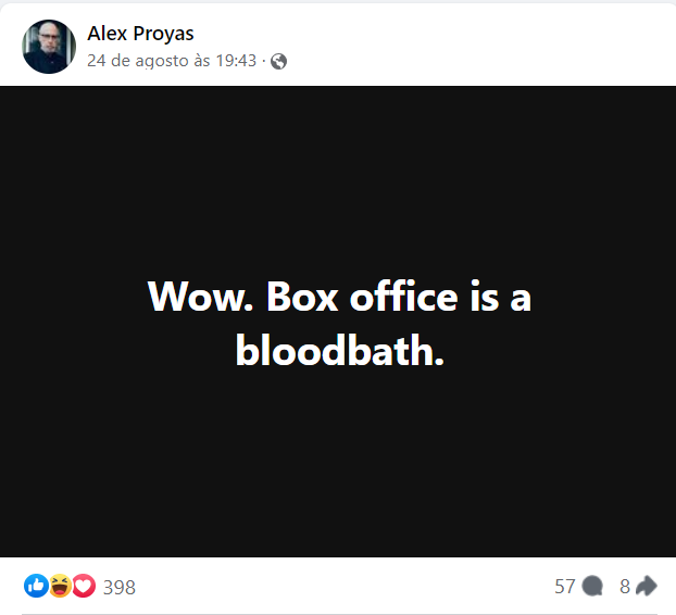 “Uau. A bilheteria é um banho de sangue”, acrescentou.
