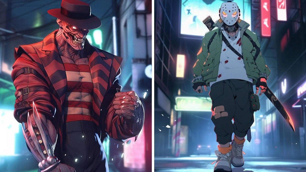 Ghostface, de Pânico, se tornaria um vilão astuto e ágil, aproveitando-se da confusão e da furtividade para atacar. Com sua capacidade de se camuflar, ele brincaria com a mente de seus oponentes antes de atacar. Michael Myers, de Halloween, traria sua presença implacável para o universo animado, um ser silencioso, mas poderoso, cujo olhar frio e força sobrenatural o tornariam um dos inimigos mais difíceis de derrotar.