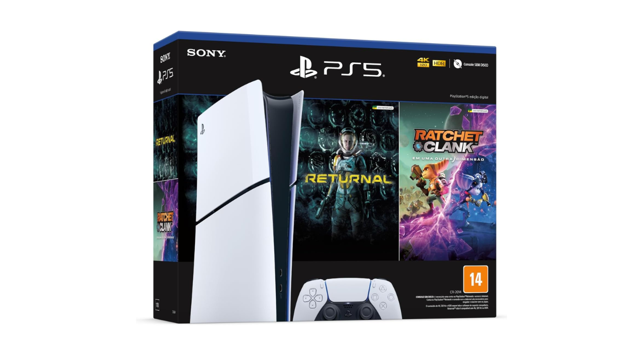 Surpreendendo com o descontão, o PlayStation 5 está custando menos de R$ 3 mil no site da Amazon. Sua edição slim digital, além de vir com um controle também conta com dois jogos para você já testar o aparelho assim que chegar em casa. São eles os divertidos Ratchet & Clank: Em Uma Outra Dimensão e Returnal.