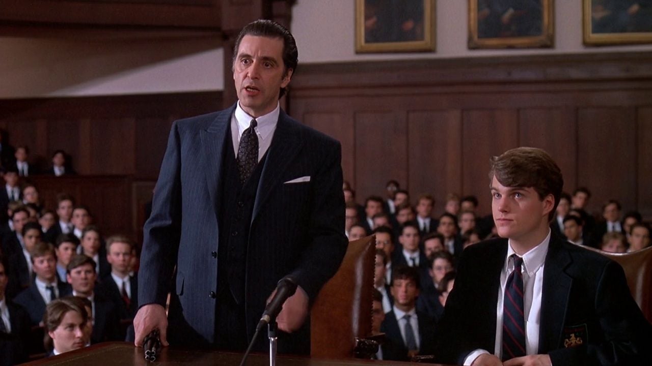 Nesse sentido, seu monólogo no final do filme é um dos discursos mais memoráveis de todos os tempos. Depois de acompanhar o coronel em uma viagem a Nova York, Charles deve enfrentar o comitê disciplinar de sua prestigiosa escola. Isso atinge vários de seus amigos. Este último vandalizou o carro do diretor; para puni-los, o aluno teria que testemunhar contra eles, pois presenciou a cena.
