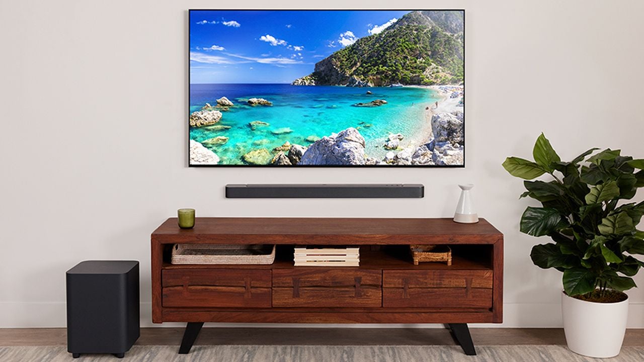 Uma das soundbars mais populares do mercado, a LG SQC1 oferece 160 W RMS de potência e subwoofer externo sem fio, sendo ideal para salas de tamanho médio. Com conectividade Bluetooth e HDMI ARC, o modelo une desempenho sólido com preço competitivo.