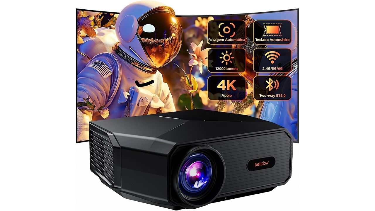 Quem busca uma alternativa à TV tradicional para curtir filmes e séries pode aproveitar esta oferta do projetor Bettdow AC1038. Compatível com resolução 4K e equipado com sistema Android 11, o modelo está saindo por R$ 640,39 na Amazon Brasil ao aplicar o cupom de 5% OFF diretamente na página do produto.
