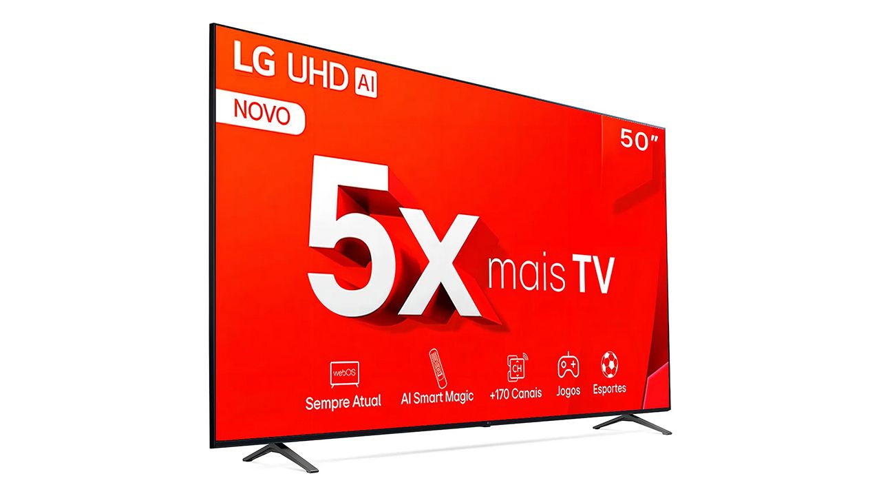 Outra opção interessante para quem busca uma TV de 50 polegadas é a Smart TV LG 50” 4K UHD ThinQ AI Pro, que também está em oferta no Mercado Livre, saindo por apenas R$ 1.901 no Pix com mesmo cupom: GANHEM10.