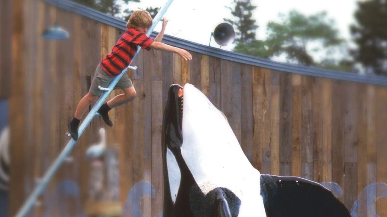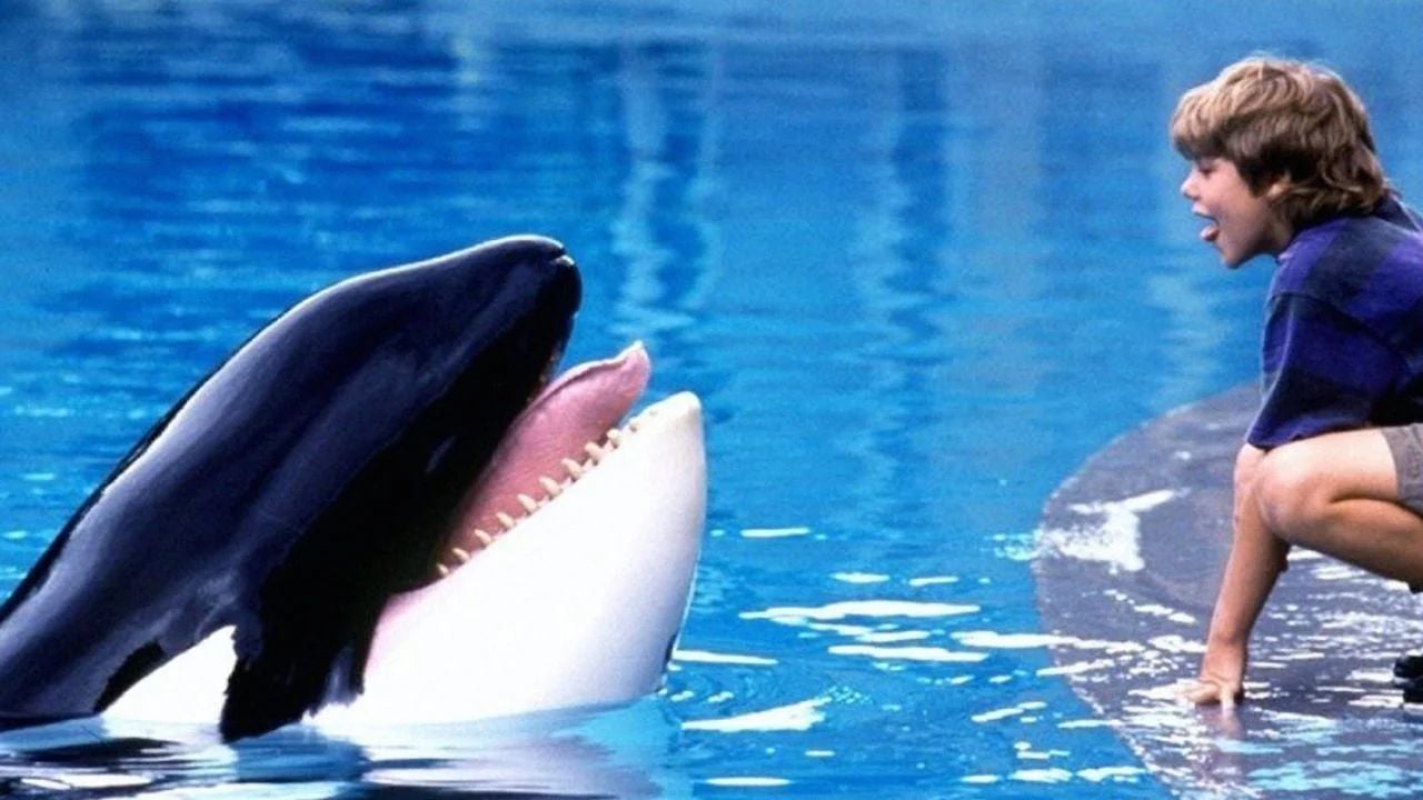 "A história de uma amizade extraordinária." O slogan pode ser lido no pôster de Free Willy, que acompanha a cena agora icônica da orca saltando sobre o herói, Jesse, para recuperar sua liberdade.