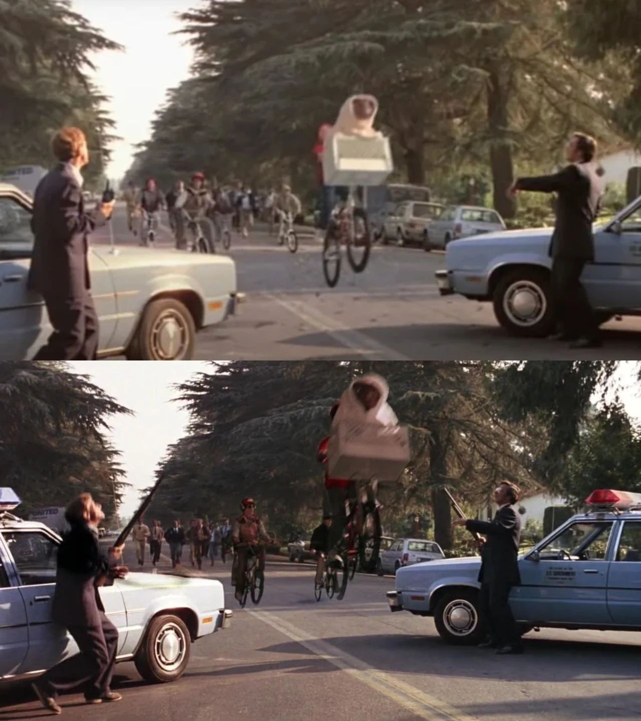 Quando o clássico de Steven Spielberg, E.T. o Extraterrestre, celebrou seu 20º aniversário, o fez com um relançamento nos cinemas. No entanto, os fãs que foram vê-lo na tela grande se depararam com uma grande surpresa. Em uma das cenas finais, quando Elliot e seu amigo alienígena fogem da polícia, os perseguidores de repente têm walkie-talkies em vez das armas que portavam nas filmagens originais dos anos 80. A versão original para cinemas foi incluída novamente no lançamento posterior em Blu-ray, que comemorou o 30º aniversário do filme em 2002.