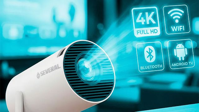 O diferencial do HY-300 é o design giratório de 180°, que permite inclusive para projetar no teto. Ele também traz correção automática de keystone (ajuste da imagem quando ela fica torta), além de Wi-Fi e Bluetooth, o que ajuda a conectar com outros dispositivos e usar o projetor com mais praticidade.