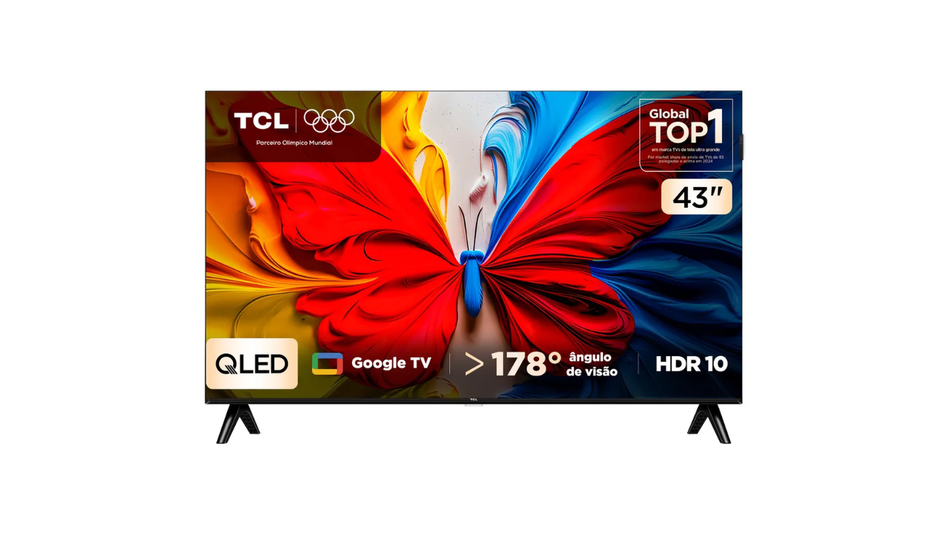 Além do design moderno e compacto, essa TCL de 43" tem Full HD (1920×1080) e tecnologia QLED, que oferece contraste melhor e uma gama de cores mais ampla do que TVs LED convencionais, ideal para filmes, séries e jogos. Graças ao sistema operacional Google TV, você acessa rapidamente plataformas como Netflix, YouTube, Prime Video, Disney+ e muito mais direto da tela.