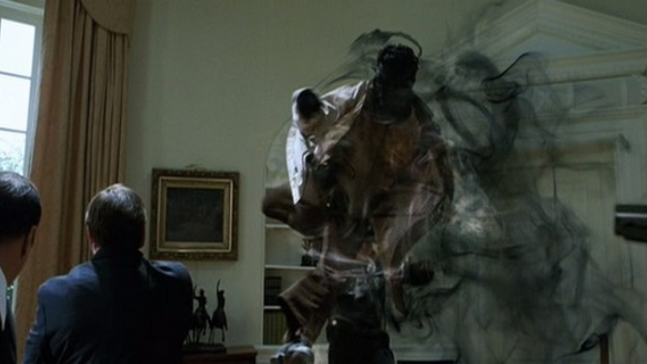 O mutante Noturno (Alan Cumming) consegue abrir caminho até o Salão Oval e, em seguida, ataca todos os agentes fortemente armados em uma impressionante sequência em câmera lenta. Usando seus poderes, ele os incapacita em questão de segundos antes de encurralar o presidente na mesa do Salão Oval.