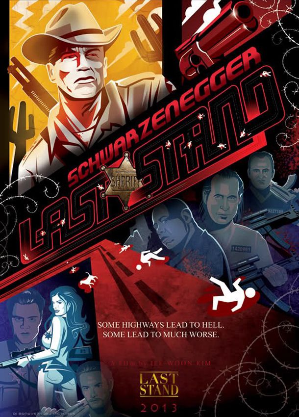 Enquanto a produção dos dois primeiros está em andamento, The Last Stand já divulgou um primeiro cartaz multicolorido, cheio de traços pop e com uma bela frase de efeito: "Algumas estradas levam ao inferno. Outras levam a um lugar muito pior". No filme, o líder de um cartel de drogas foge de um tribunal e corre para a fronteira com o México, enquanto um xerife (Arnold Schwarzenegger) parte em sua busca. Rodrigo Santoro e Forest Whitaker também figuram no elenco.