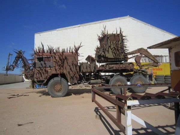 Com as filmagens de Mad Max: Fury Road em plena atividade, novas imagens dos bastidores foram divulgadas. Desta vez, ao invés do elenco, as fotos mostram os carros, as máscaras e mais algumas traquitanas deste cenário futurista desolador. O destaque fica por conta do veículo em destaque acima, repleto de espinhos de ferro. Já imaginou uma máquina destas em funcionamento?
