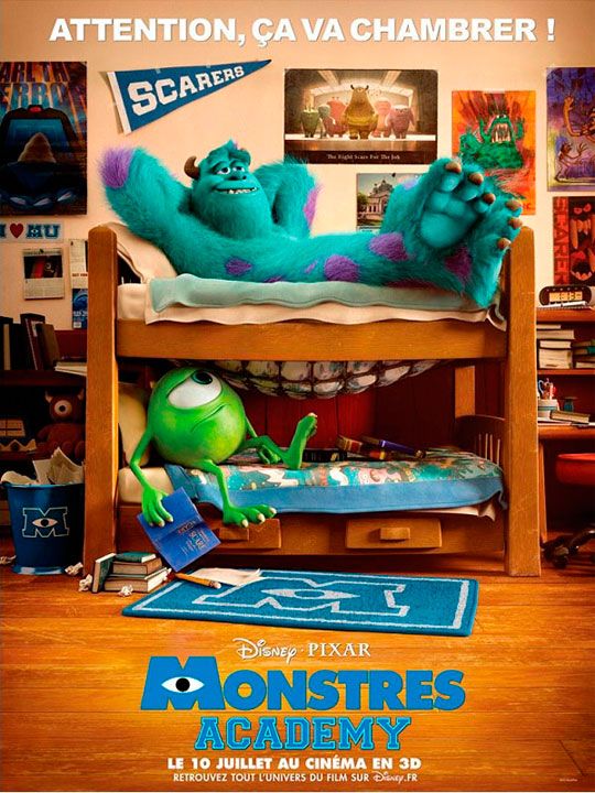 Sulley e Mike Wazowski frequentam a universidade no prelúdio de Monstros S.A., que chega aos cinemas brasileiros no dia 21 de junho de 2013. Abaixo, você pode conferir três novos cartazes da produção, sendo dois deles feitos para os cinemas da França. A imagem mais divertida traz a dupla em seu dormitório, mostrando vários detalhes que devem agradar aos fãs.