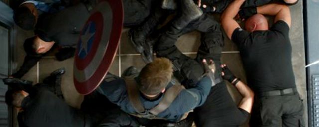 Apenas um dia após a divulgação do primeiro cartaz, a aventura Capitão América 2 - O Soldado Invernal ganhou duas novas imagens! Nas fotos abaixo, você pode conferir o herói Steve Rogers (Chris Evans) com seu uniforme novo, passando por cima de um grupo derrotado no chão, e ainda o Coronel da S.H.I.E.L.D., Nick Fury, interpretado pelo ator Samuel L. Jackson.