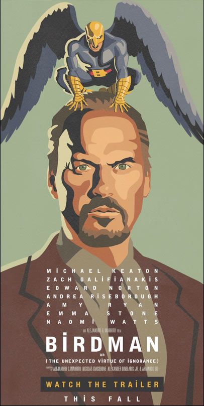 De acordo com a sinopse oficial de Birdman (ou The Unexpected Virtue of Ignorance, título alternativo que significa "A inesperada virtude da ignorância"), acompanha a rotina de Riggan Thomson, o ator interpretado por Keaton, que viveu um herói icônico nos cinemas com o visual de um pássaro. Os dias de glória parecem cada vez mais distantes e ele agora tenta dar a volta por cima participando de um musical da Broadway. Entretanto, "nos dias que antecedem a noite de estreia do espetáculo ele passa a lutar contra seu ego enquanto tenta recuperar sua família, sua carreira e a si mesmo".