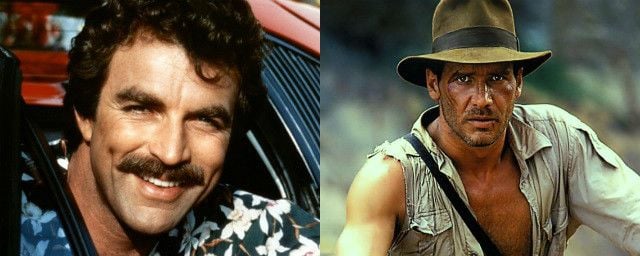 Harrison Ford 2 X 0 Outros. Rá! Mas a história aqui é um pouco diferente. Neste vídeo com legendas em espanhol, o diretor de Indiana Jones, Steven Spielberg, explica que ele e o produtor, George Lucas, testaram várias pessoas para o papel de Indiana Jones. Desde de Tim Matheson (de Clube dos Cafajestes, que hoje em dia tem se dedicado mais à TV), a Peter Coyote (Lua de Fel) passando pelo Dr. Richard, de Friends, Tom Selleck. Eis aqui como se saiu o bigodudo, nervosinho, ao lado da atriz Sean Young (Blade Runner, o Caçador de Andróides). Tão bem, que era ele a primeira escolha de Spielberg para dar vida ao arqueólogo. Porém, teve que recusar o papel, já que o Estúdio Universal, responsável pela série Magnum, P.I., que protagonizava, não o liberou. Já imaginou?