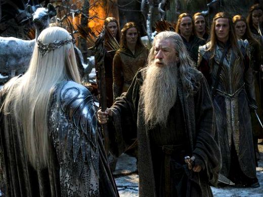 O Hobbit: A Batalha dos Cinco Exércitos ganhou duas novas imagens de produção. Na primeira delas, Gandalf (Ian McKellen) está em meio a elfos, enquanto na segunda vemos o diretor Peter Jackson (da trilogia O Senhor dos Anéis) dar instruções ao protagonista Martin Freeman (Bilbo). Veja: