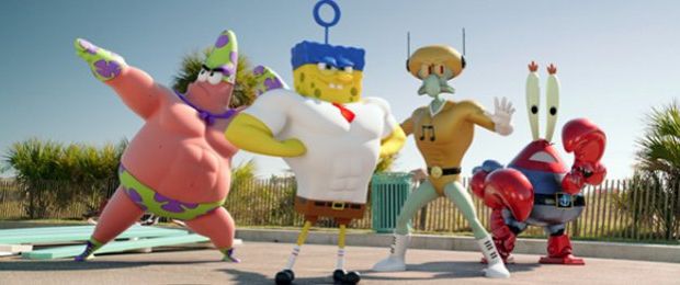 Entretanto, o painel teve início de forma bem mais amena, com a apresentação do primeiro teaser de Bob Esponja - Um Herói Fora D'Água (5 de fevereiro de 2015). Inicialmente explorando o traço característico dos desenhos com o personagem, o vídeo surpreende com um salto abrupto para a animação computadorizada, na qual todos os personagens ficam bem maiores e com ar de super-heróis. Bob Esponja & cia inclusive contracenam com atores de verdade, por mais que estes sejam figura decorativa no teaser exibido. Bem estranho.