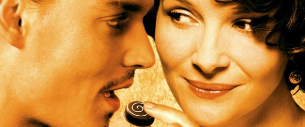 O chocolate vira o símbolo de todos os prazeres (culinários e sexuais) nesta comédia romântica sobre Vianne, uma ousada especialista em doces (Juliette Binoche) que abre uma loja de chocolates em frente à Igreja, em uma cidade penitente e recatada. Logo, as pessoas descobrem os prazeres dos bombons e trufas, e cedem à tentação... A própria Vianne também se arrisca no amor ao conhecer o forasteiro Roux (Johnny Depp).