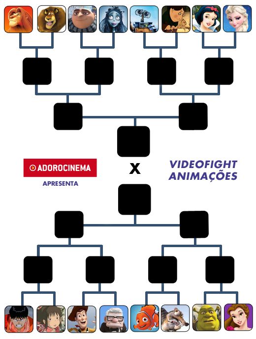 Fizemos uma seleção buscando ressaltar a diversidade de estilos dentro da própria animação, do traço clássico desenhado a mão à técnica computadorizada, do stop-motion ao mangá japonês e por aí vai. Conheça os 16 competidores do VideoFight das Animações: O Rei Leão, Madagascar, Meu Malvado Favorito, A Noiva-Cadáver, Wall-E, As Bicicletas de Belleville, Branca de Neve e os Sete Anões, Frozen - Uma Aventura Congelante, Akira, A Viagem de Chihiro, Toy Story, Up - Altas Aventuras, Procurando Nemo, A Era do Gelo, Shrek e A Bela e a Fera.