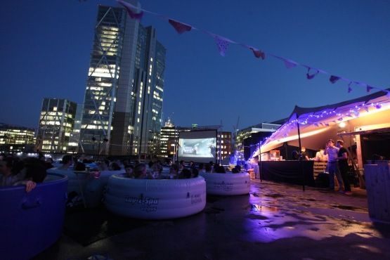 Os ingressos custam 20 libras - que no momento equivalem a caríssimos R$ 80,00 - e a iniciativa é um projeto dos mesmos criadores do Hot Tub Cinema, em que o público vê filmes se refrescando dentro de piscinas e banheiras.