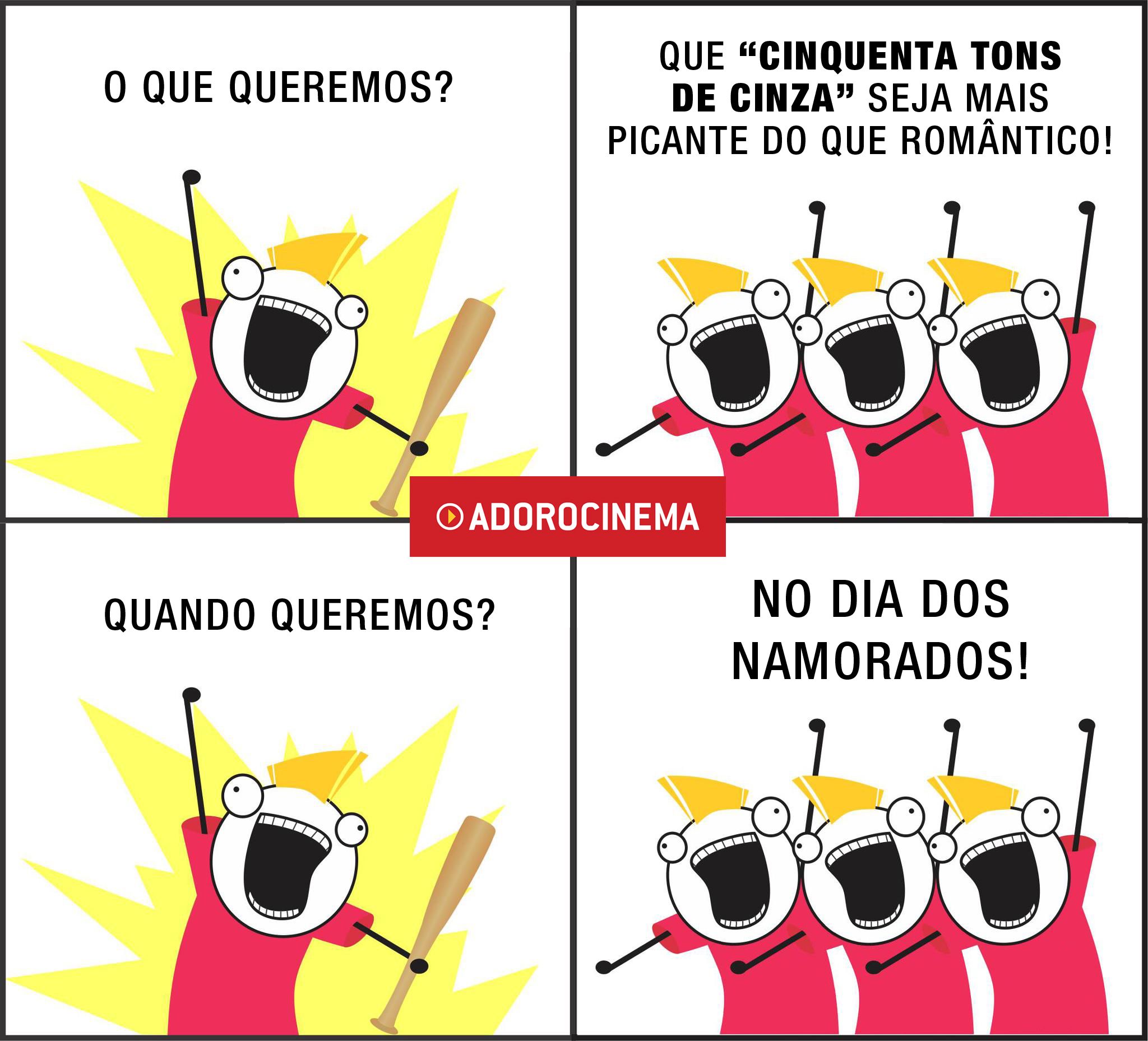 O livro é picante; as cenas do filme que foram divulgadas até agora também. Então, tudo leva a crer que Cinquenta tons de Cinza seja “mais chicote” e “menos bombom”. Tomara. Afinal, o cardápio romântico costuma ser muito mais extenso do que o... erótico? O filme está previsto para estrear por aqui na semana do Dia dos Namorados, em 11 de junho.