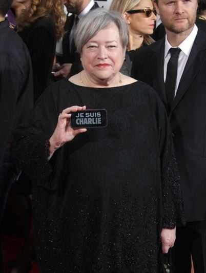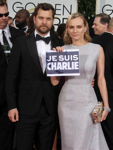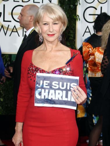 Em apoio à revista francesa Charlie Hebdo, vítima de um ataque terrorista há alguns dias, diversos atores desfilaram com cartazes "Je Suis Charlie", ou seja, "Eu sou Charlie". Veja abaixo as fotos de Helen Mirren, Joshua Jackson, Diane Kruger, George Clooney, Amal Alamuddin, Patricia Arquette e Kathy Bates. Helen Mirren, aliás, também estava vestindo uma caneta como broche, para defender a liberdade de expressão.