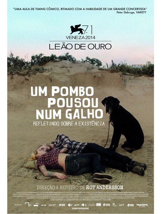 Ele chegou sem alarde, nas esteira dos badalados Birdman e Pasolini, e faturou o prêmio máximo do Festival de Veneza 2014. Um Pombo Pousou num Galho Refletindo Sobre a Existência, o extenso título do novo trabalho do diretor sueco Roy Andersson, já tem cartaz brasileiro. Você pode conferi-lo logo abaixo, com exclusividade no AdoroCinema.