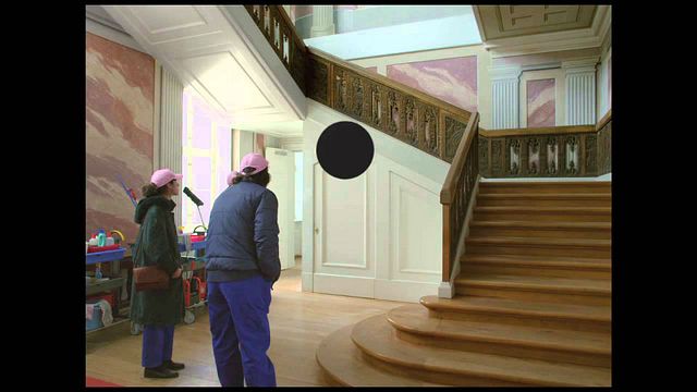É como se observássemos toda a narrativa com uma luneta (o Tondoscope), o que cria um distanciamento, como se ao espectador coubesse assistir aos olhos de Deus - ou do diabo. Mesmo com tão pouco espaço de tela para explorar (cerca de 1/3 do total), Van Den Berghe consegue dar conta de contar a história direitinho, através de um enquadramento bem preciso.