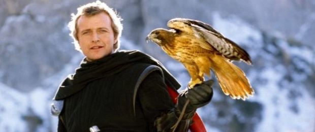 Michelle Pfeiffer como a donzela que se transforma em falcão e Rutger Hauer como o cavaleiro que vira um lobo