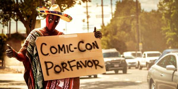 Deadpool terá destaque no painel da Fox na Comic-Con 2015, então, o mutante já está a caminho de San Diego, pedindo, em bom castelhano, uma carona aos amigos mexicanos a caminho da cidade. (Figuraça!)
